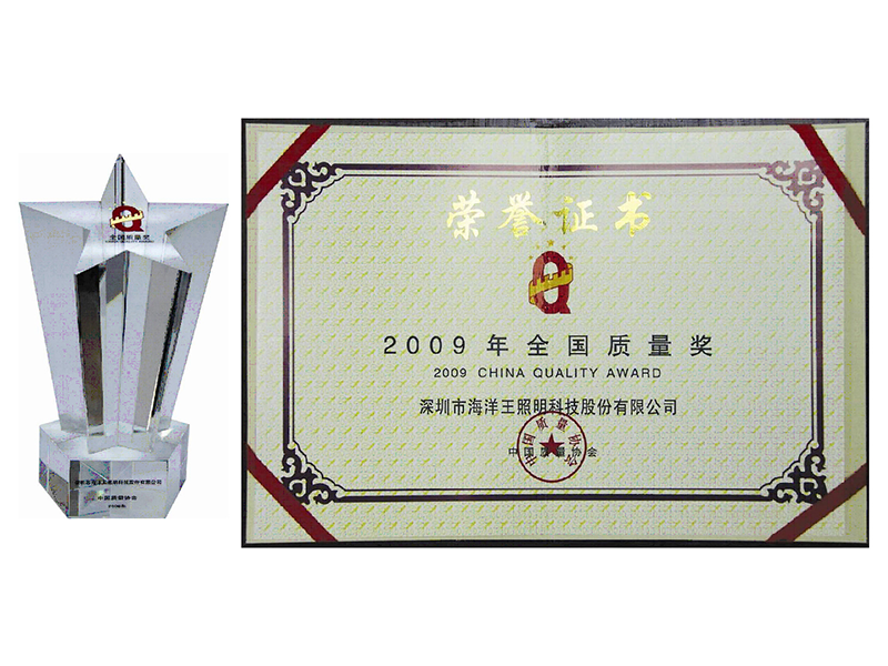 全国质量奖是对实施卓越质量管理,并在质量、经济、社会效益等方面取得显著成绩的组织授予的在质量方面的最高荣誉。2009年,全国质量奖获奖企业仅十家,海洋王就是其中一位。