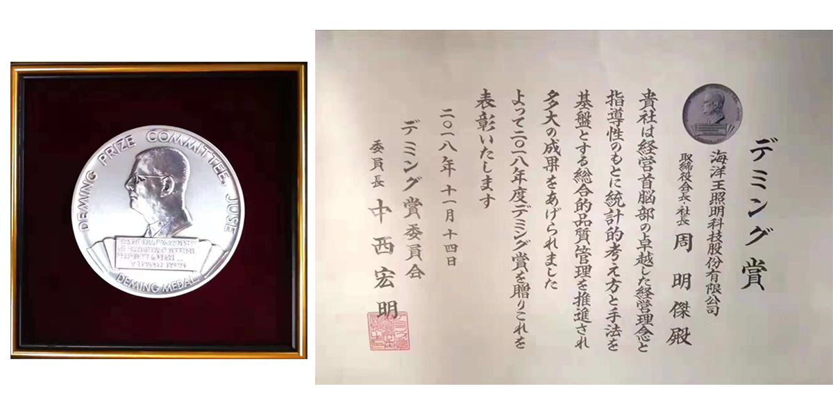 日本戴明质量奖是全球三大质量奖之一,是被广泛认可的世界性质量奖项,每年颁发给在品质方面做出重大改进的个人或公司。目前,海洋王是国内首家获此殊荣的本土企业。