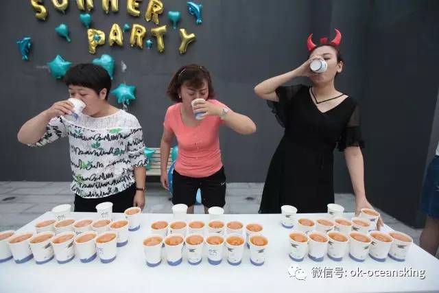 首先上演的是啤酒计时赛,每轮每组派3人参加,在规定时间谁的啤酒喝的最多获胜。