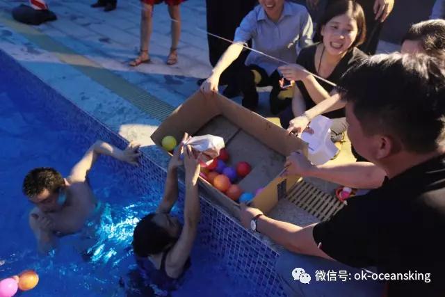 7月11日晚,“海洋王夏季泳池嘉年华”活动在深圳光明海洋王科技楼十三楼泳池欢乐上演, 10个事业部分为2个队,分别由唐队长和李队长带队。