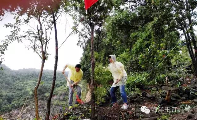 哗啦啦的大雨没有浇灭海洋王人公益植树的热情,经过长达3个多小时的等待,雨势稍稍和缓之后,大家就迫不及待地参与到植树当中。