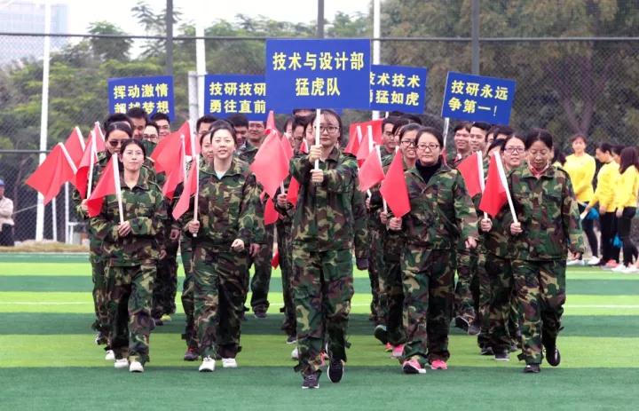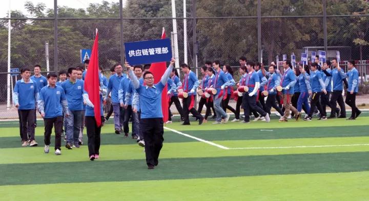 11月25日下午,深圳骤降的气温也挡不住大家的热情,2017年海洋王总部趣味运动会准时召开。本次运动会共有8支参赛队伍,包含了总部及工厂所有员工。公司董事长周明杰先生,当值轮值副总经理陈艳女士,轮值副总经理杨志杰先生,以及各一级部门领导参加了运动会,并担任了颁奖嘉宾。下午1点30分,大会正式开始,首先由四名2017年“最美海洋王人”组成的司旗方阵,庄严入场,拉开了运动会的帷幕。