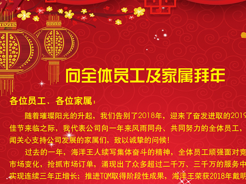 海洋王向一年来风雨同舟、共同努力的全体员工,向始终默默无闻关心支持公司发展的家属们,致以诚挚的新春问候!
